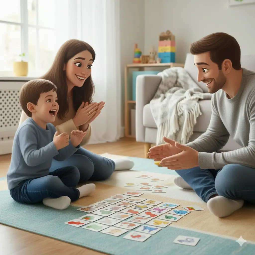 Ayuda al niño a ponerle nombre a lo que siente (alegría, tristeza, enojo, calma) mediante personajes lúdicos y colores.