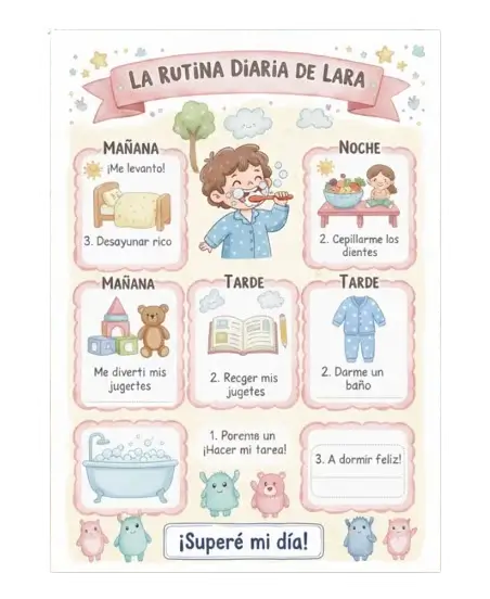 Tarjetas visuales que eliminan la confusión y el caos. El puente perfecto para que tu hijo aprenda a ser autónomo mientras tú recuperas la calma.